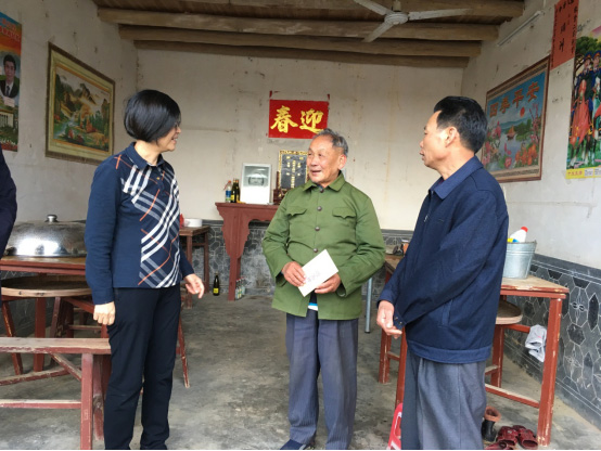 杜麗霞同志一行還深入到貧困戶家中走訪慰問,了解他們生產(chǎn)生活、脫貧增收等情況,向他們致以節(jié)日的問候并送上慰問金。在貧困戶范宜暖家中,杜麗霞同志與他親切交流,問起老人年貨準(zhǔn)備情況,子女什么時候回家等。在貧困戶徐增泉家中,杜麗霞詳細(xì)了解他的身體狀況和家庭生活情況,得知他是五保戶,但不等不靠,仍然通過養(yǎng)雞、養(yǎng)鴨、種香蕉等力所能及的勞動來增加收入時,杜麗霞同志十分高興,請他保重好身體,并要求駐村工作隊宣揚(yáng)他的好品質(zhì)、好精神,以此激發(fā)廣大貧困戶依靠自己勤勞的雙手脫貧致富的內(nèi)生動力。