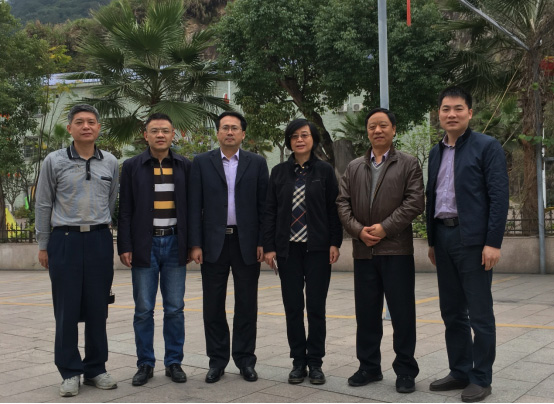 杜麗霞(左五)等與廣州對口幫扶梅州指揮部、青溪鎮(zhèn)負(fù)責(zé)同志現(xiàn)場推進(jìn)小柚果加工項目