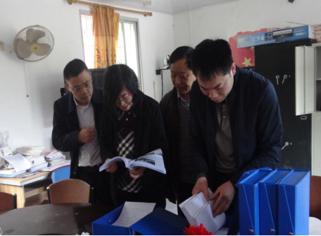 杜麗霞(左一)等檢查扶貧資料臺賬