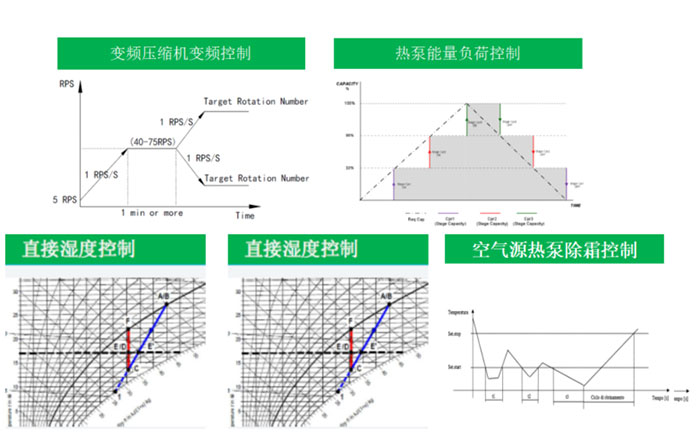 高效穩(wěn)定的除濕技術(shù):烘干系統(tǒng)除濕過(guò)程是系統(tǒng)設(shè)計(jì)關(guān)鍵,一般烘干除濕時(shí),易出現(xiàn)溫度下降嚴(yán)重或濕度過(guò)高的情況,導(dǎo)致烘干品質(zhì)下降;變頻烘干系統(tǒng)除濕時(shí),按需調(diào)節(jié)壓縮機(jī)轉(zhuǎn)速,控制冷/熱量輸出,結(jié)合比例調(diào)節(jié)露點(diǎn)確保有效除水量、維持烘干溫度/濕度穩(wěn)定,解決了除濕時(shí)溫度/濕度不穩(wěn)定問(wèn)題。